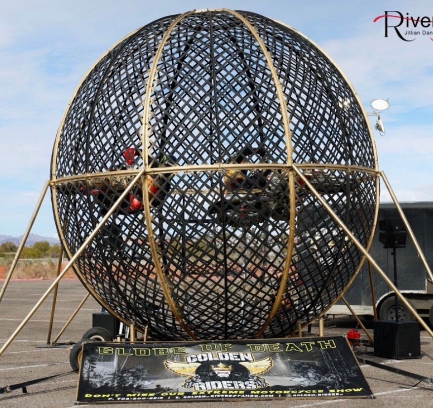 The Golden Riders Globe of Death show is a perfect fit for fairs, festivals, car shows, motorcycle events, and large entertainment venues looking to attract and engage big crowds. Our show brings high energy, excitement, and a unique attraction that stands out and keeps people coming back.